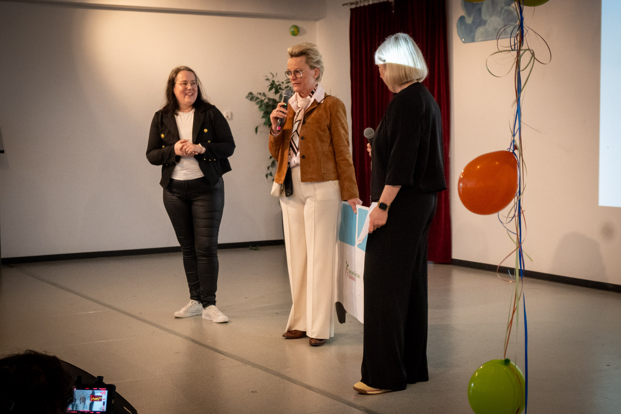 Geladen waren auch weitere Kooperationspartner, Freunde und Weggefährten der Neumühlenschule.  Frau Bauer von der Dieter-Bauer-Stiftung überreichte der Neumühlenschule eine großzügige Spende.