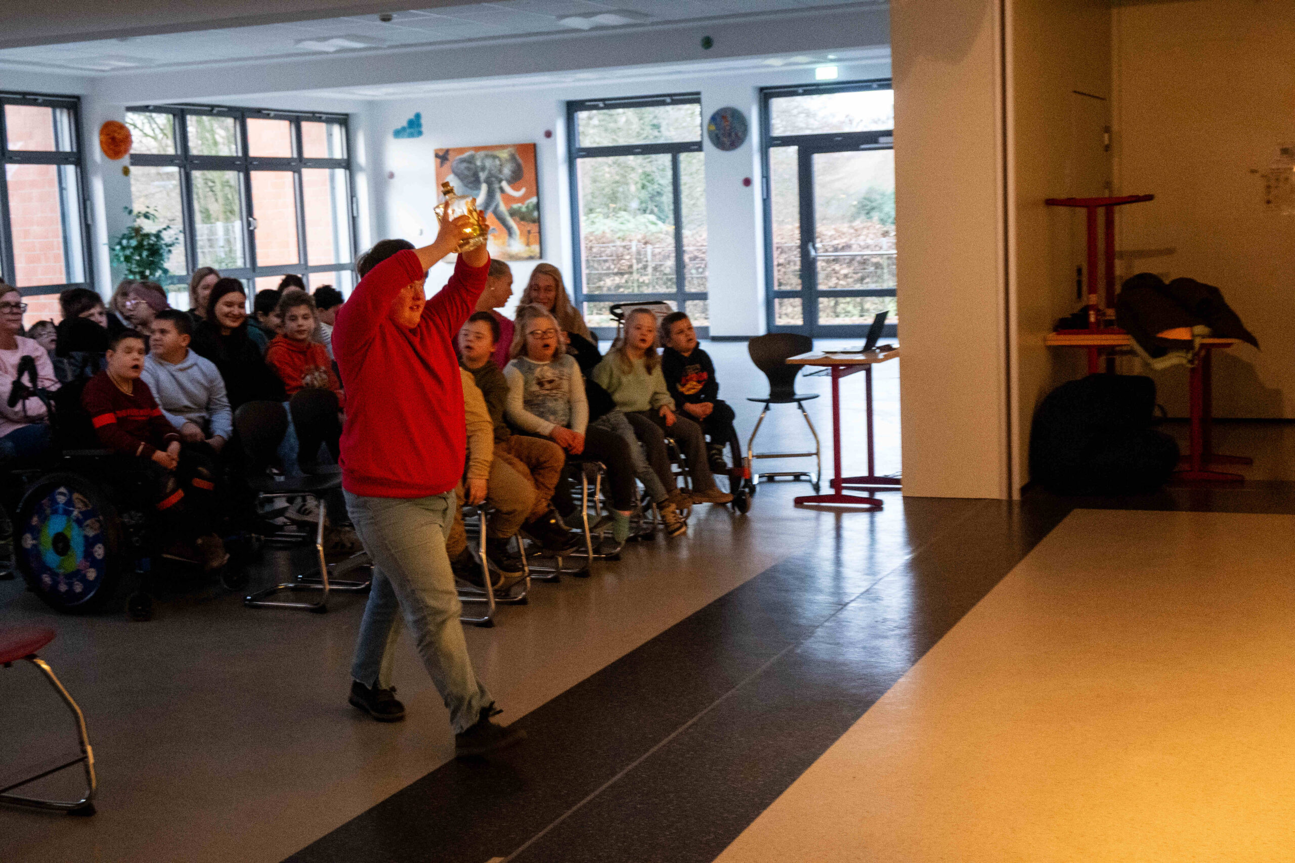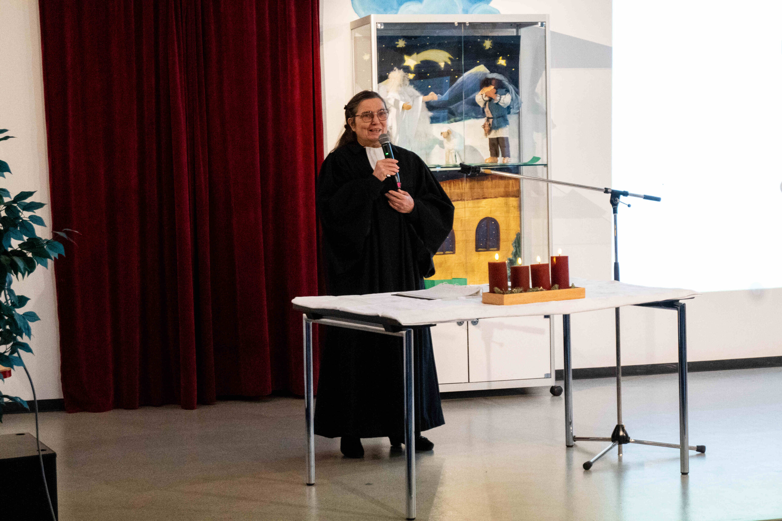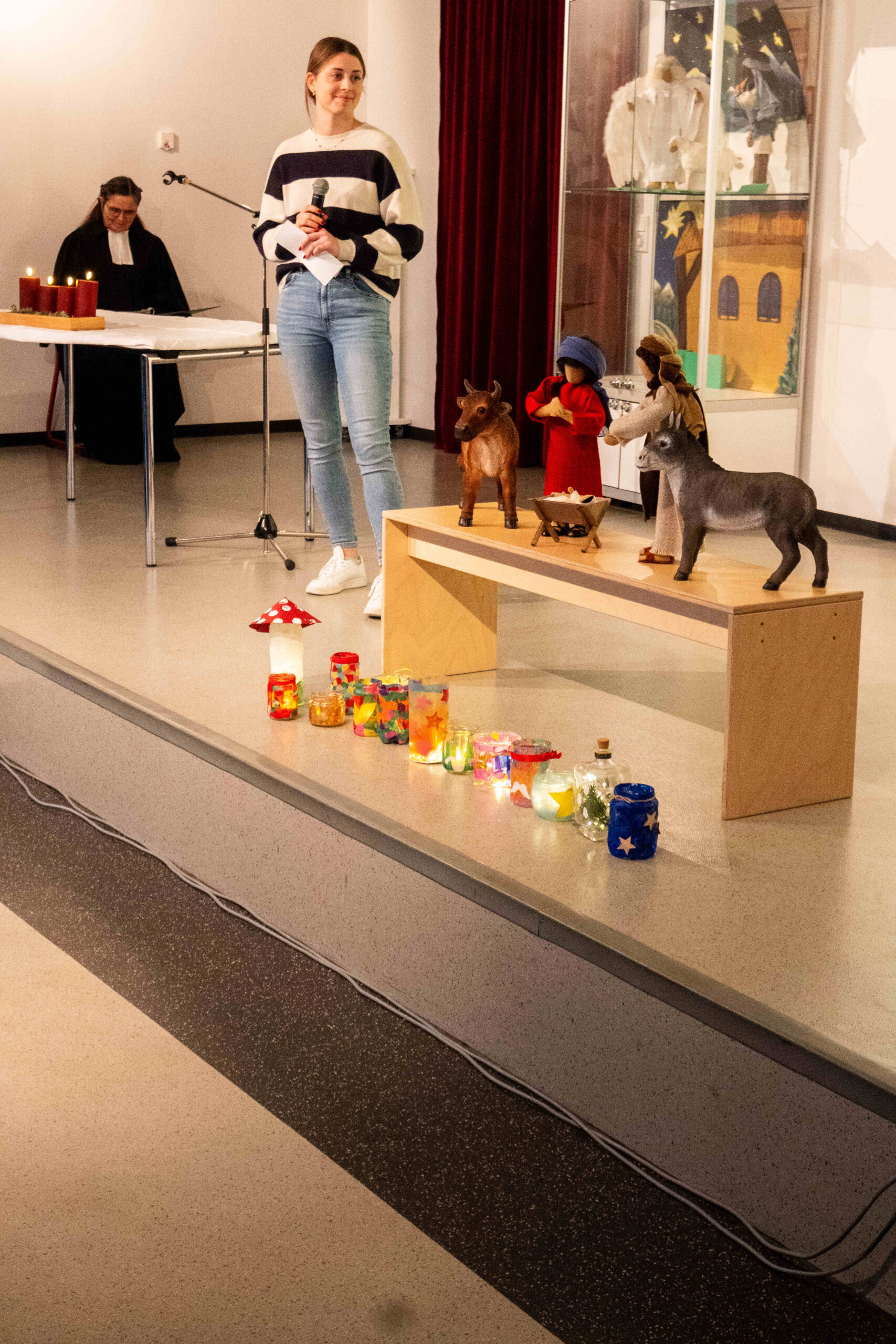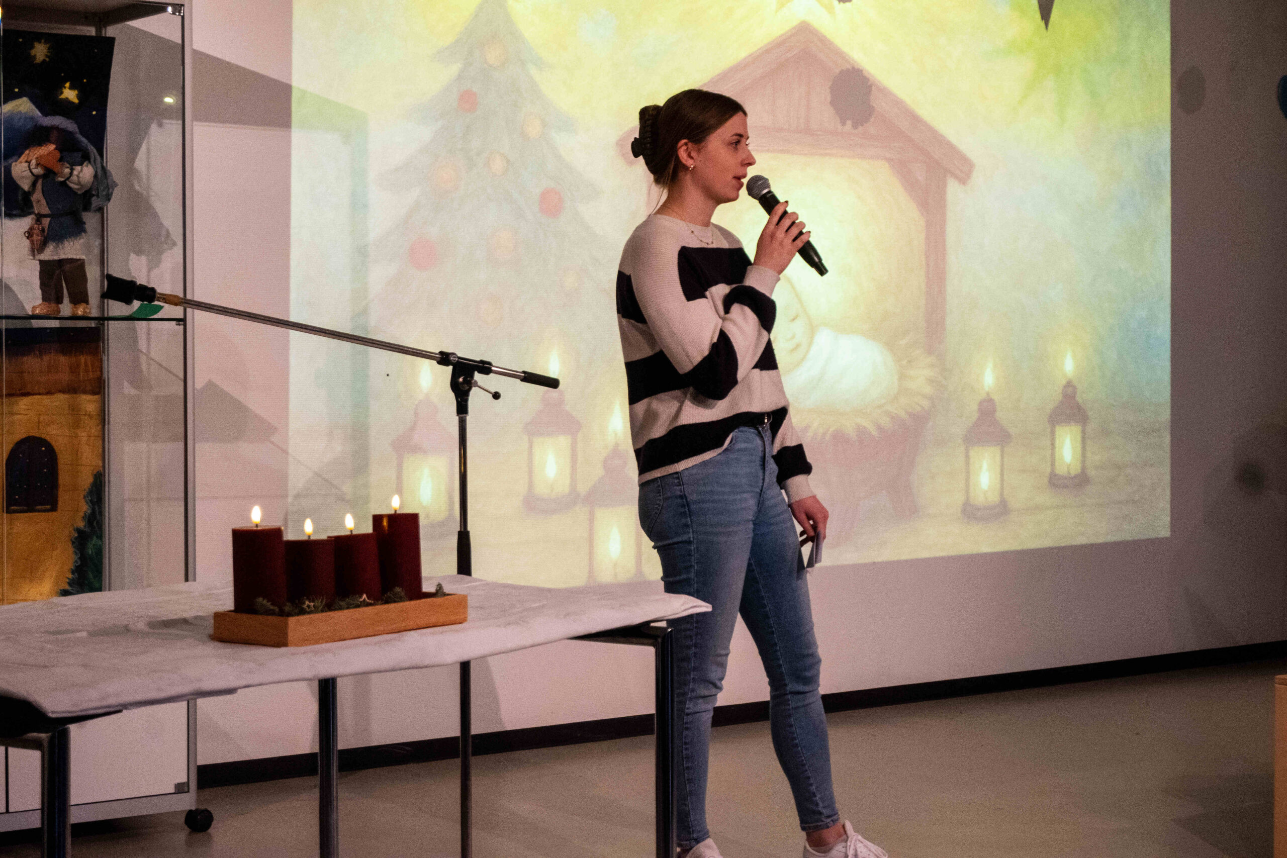 Am vorletzten Schultag vor den Weihnachtsferien haben wir an unserer Schule einen wunderschönen Gottesdienst gefeiert. Alle Klassen kamen in der Mensa zusammen, um sich auf Weihnachten einzustimmen. Jede Klasse hat ein Adventslicht erstellt, dass in der Dunkelheit schön leuchtet.